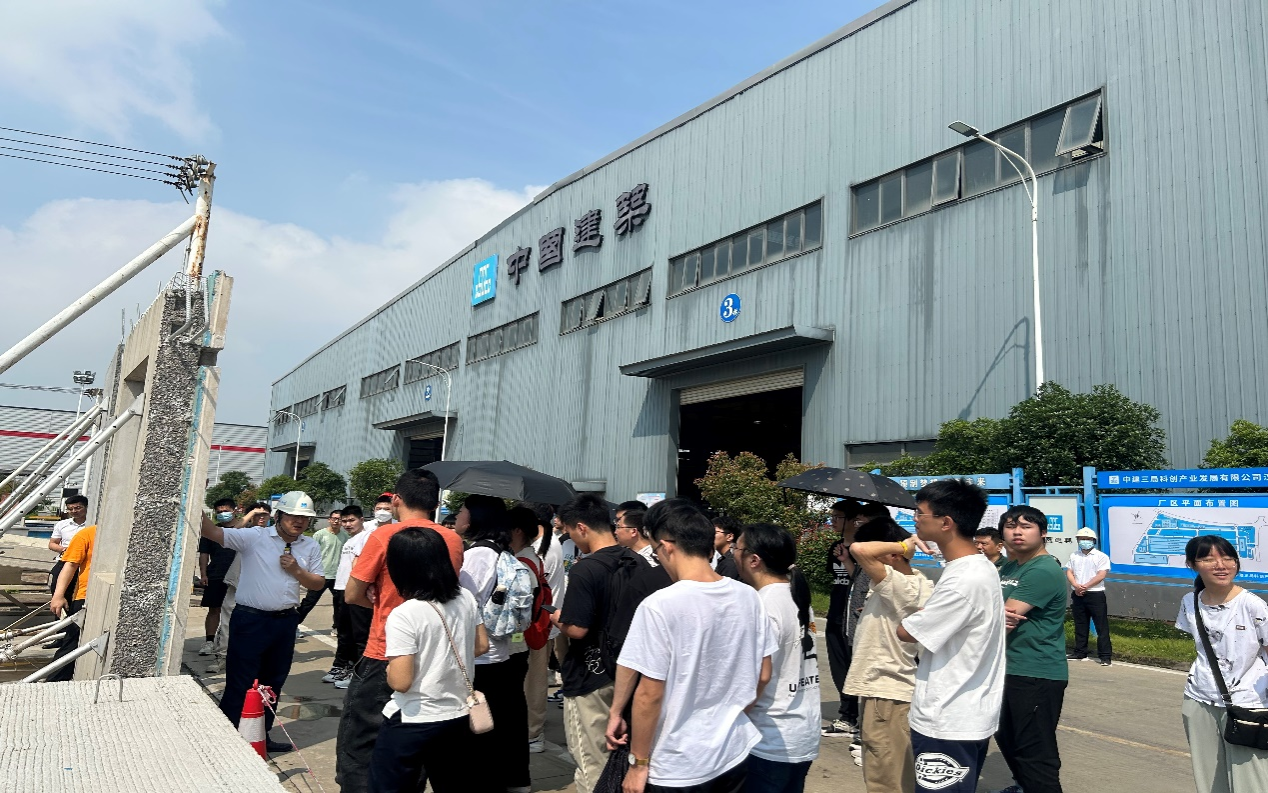 “工欲善其事,必先利其器。”互联网时代,数字化催生着各个行业的变革与创新,建筑行业也不例外。为了落实学校学习贯彻习近平新时代中国特色社会主义思想主题教育,坚持联系实际、立足岗位、知行合一,加深学院行政管理人员对智能建造专业的理解,更好的为师生进行精准化服务,5月18日上午,学院党委副书记王忠海和工程管理系老师孔文涛带领行政办公室部分教师深入行业前沿,联合2020级智能建造专业的同学一起开展了“行走的课堂-赴中建三局科创产业发展有限公司走访活动”。中建三局科创公司总工程师孙克平,总监理助理徐娟,技术创新部经理黄熙萍,装配式事业部副总经理张克强,校园招聘负责人尹纪晓,汉南厂厂长祁乐,工人技能培训学校负责人项旺保对Bsports必一体育一行进行了热情的接待。