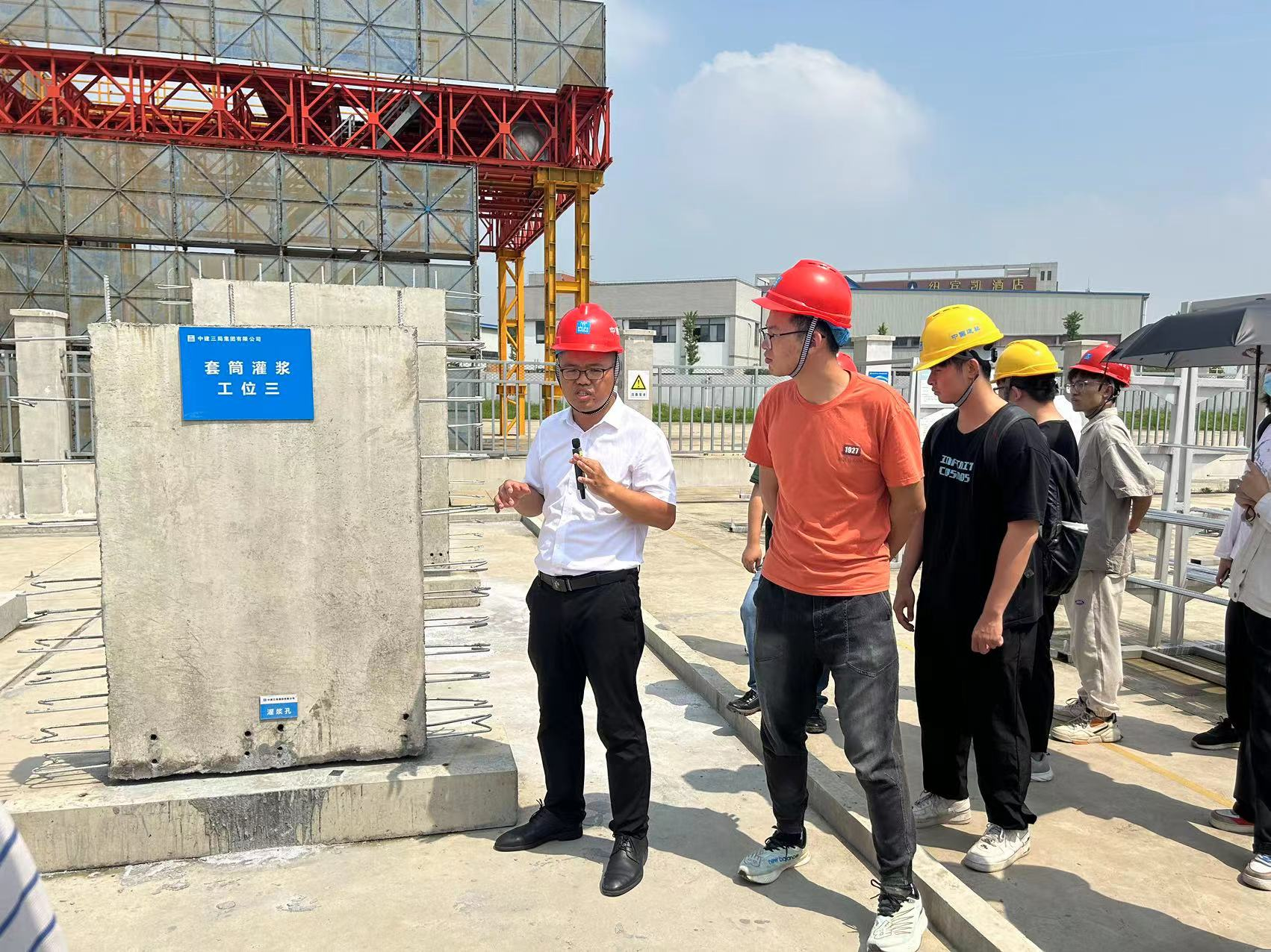 观摩完智慧化生产厂,中建三局产业工人技能培训学校负责人项旺保带领学院师生参观了中建三局职业技能培训学校,该培训学校已经累计培训了1300余专业工人,为智慧工地输送了重要技术人才。