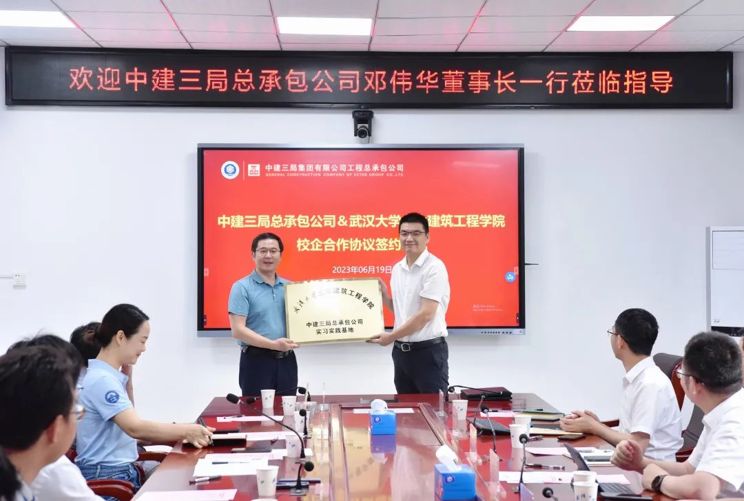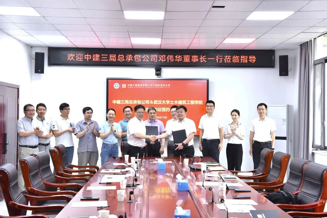 学院党委书记杨旭、中建三局党委书记、董事长邓伟华代表双方签订了校企合作协议。