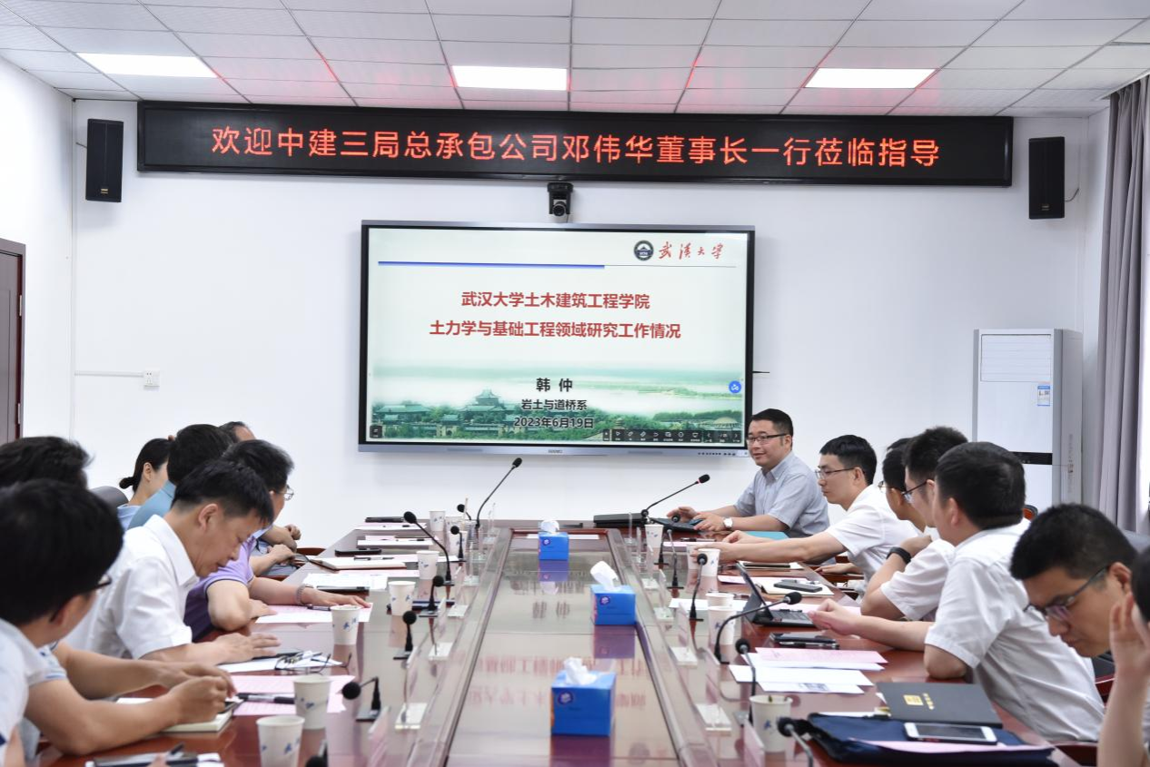 Bsports必一体育人事部副部长、岩土与道桥系教授张晓平、岩土与道桥系副教授韩仲、建筑工程系教授胡晓斌分别汇报了学院在岩石力学与岩石工程、土力学与基础工程、智能建造等领域的研究工作情况,双方进行了热烈的交流。