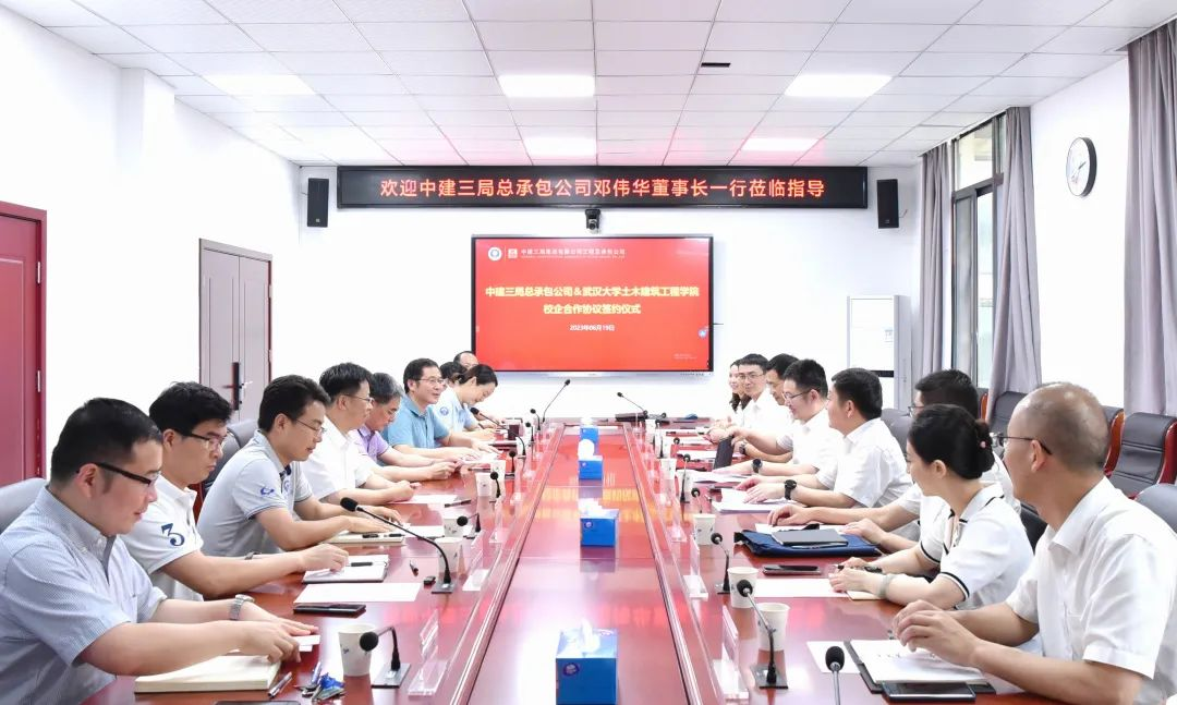 2023年6月19日,中建三局总承包公司党委书记、董事长邓伟华一行来Bsports官网开展校企合作系列活动。中建三局总承包公司党委副书记代勇、总工程师余地华、人力资源部经理付锐琳、党委办公室主任江敏、技术部副经理倪朋刚、中国建筑先进技术研究院总承包公司分院副院长欧阳明勇、人力资源部经理助理凡傲、湖北公司人力资源部经理刘小红同行,学院党委书记杨旭、院长刘泉声、Bsports必一体育人事部副部长张晓平、学院党委副书记王忠海、副院长肖娴娴、副院长于清亮、建筑工程系教授胡晓斌、岩土与道桥系副教授韩仲、党政办公室主任席睿参加活动。