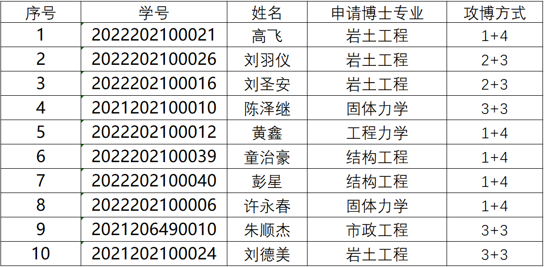 根据研究生院《关于组织学术型硕士研究生中期考核及硕博连读考核的通知》要求,经研究生本人申请、资格审核、综合考核,学院招生领导小组讨论决定拟推荐高飞等10位同学为硕博连读研究生。现将名单予以公示,公示期5天。