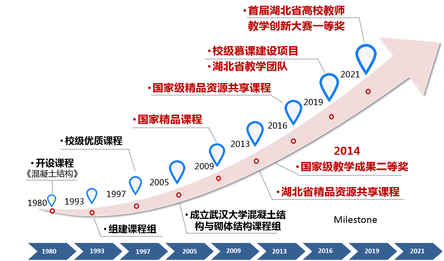 课程是人才培养的核心要素,课程质量直接决定人才培养质量;课程建设是高等学校基本建设的核心内容,是人才培养的关键环节。徐礼华教授课程团队长期以来一直致力于混凝土结构相关课程的建设,《混凝土结构与砌体结构》2009年获批国家精品课程,2013年获批湖北省精品资源共享课程,2016年获批国家级精品资源共享课程,《混凝土结构基本原理》2023年获批第二批国家一流课程(线上线下混合式)。