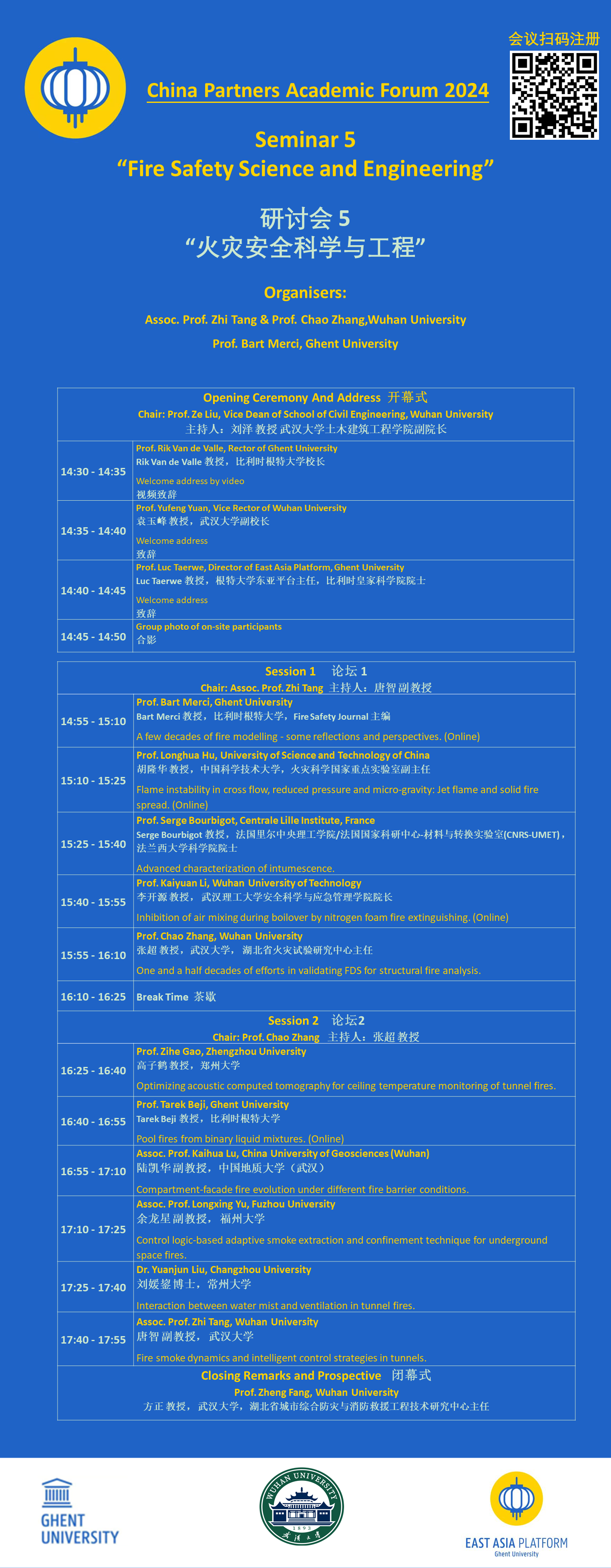 Bsports必一体育副校长袁玉峰、根特大学东亚平台负责人Luc Taerwe将莅临本次会议致辞,围绕“火灾安全科学与工程”主题,邀请来自比利时根特大学、法国里尔中央理工学院、中国科学技术大学、Bsports必一体育、武汉理工大学、中国地质大学(武汉)、郑州大学、福州大学和常州大学的11名专家学者做学术报告。