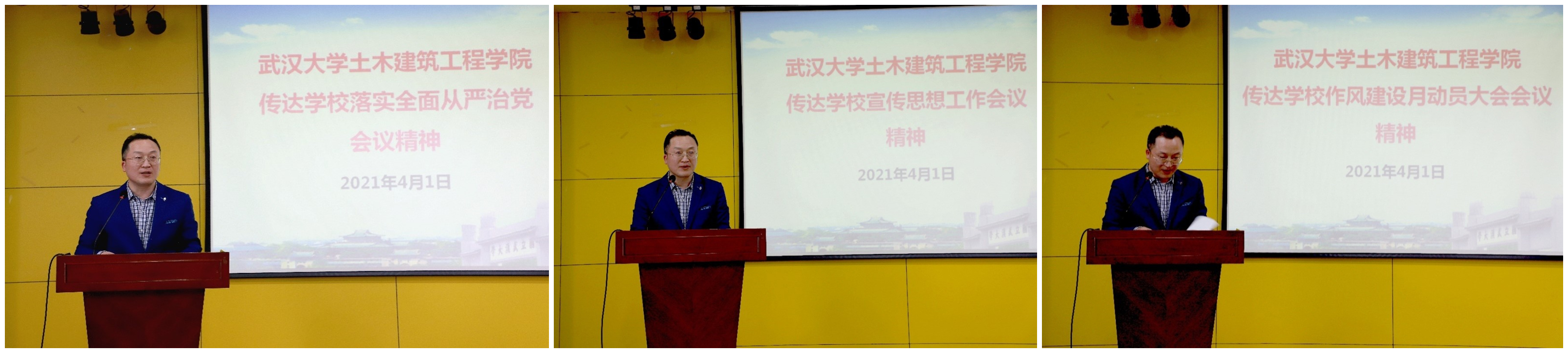 谢书记传达了学校作风建设推进月会议精神,强调党员干部带头践行中央八项规定及实施细则精神,厉行勤俭节约,坚决纠正“四风”突出问题,整治师生员工反映强烈的形式主义、官僚主义问题及损害师生利益的不正之风。