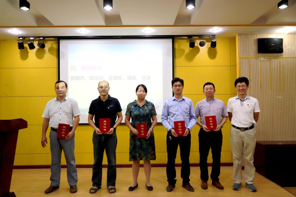 表彰大会在庄严的国歌声中拉开帷幕。学院党委副书记谢献谋宣读表彰文件,岩土与道桥系党支部等7个先进党支部、傅旭东等22名优秀党员、万臻等6名优秀党务工作者、郭耀杰等5名师德标兵、曾亚武等5名好导师、司马军等8名优秀班级导师、王正直等8名优秀烛光导航师依次上台领奖,学院党委书记雷世富、党委副书记谢献谋、副院长胡衡为先进党支部和先进个人颁奖并合影留念。
