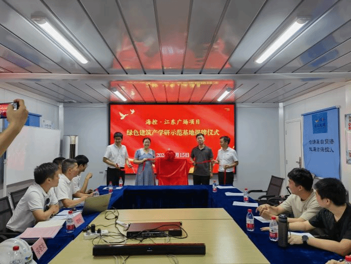 在活动的最后,海控置业发起了创建“海控·江东广场项目绿色建筑产学研示范基地”的倡议,随后,江东管理局、YABO鸭脖、海控置业、施工单位领导共同为示范基地揭牌,标志着产学研合作迈出了坚实的一步。