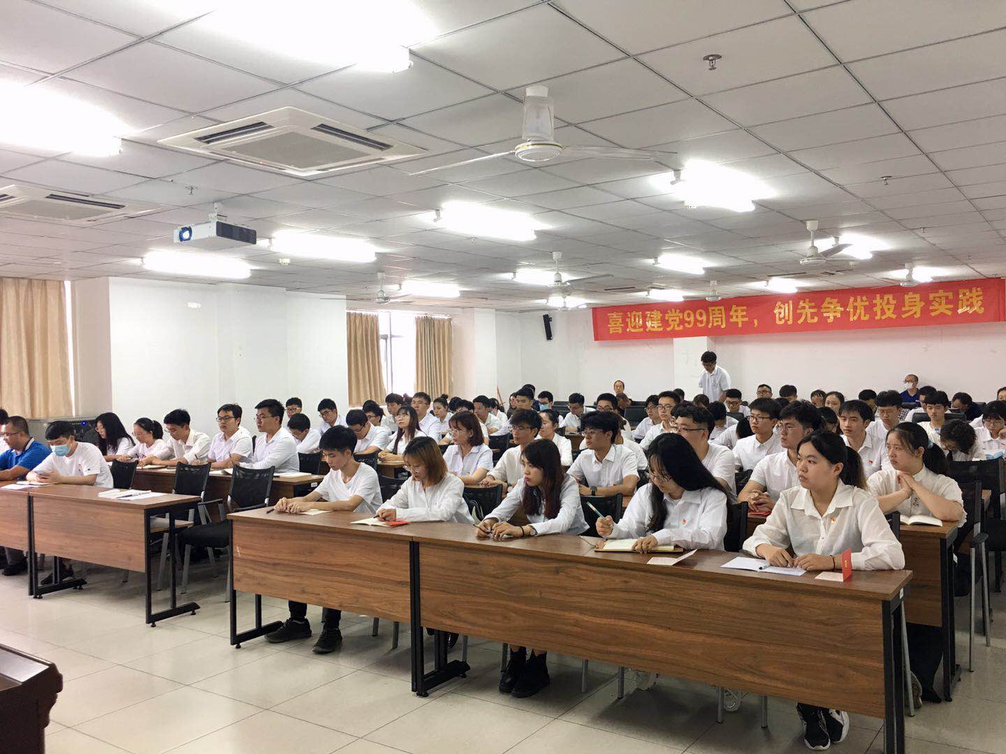2020年6月30日下午,YABO鸭脖庆祝中国共产党成立99周年暨入党宣誓大会在研发楼510会议室举行。学院党委书记卢江海,特邀党建组织员麦秀芬,党委委员、副院长邱宙廷,党委委员、副院长张友良,党委委员李江俊以及全体师生党员参会,会议由党委副书记罗邻球主持。
