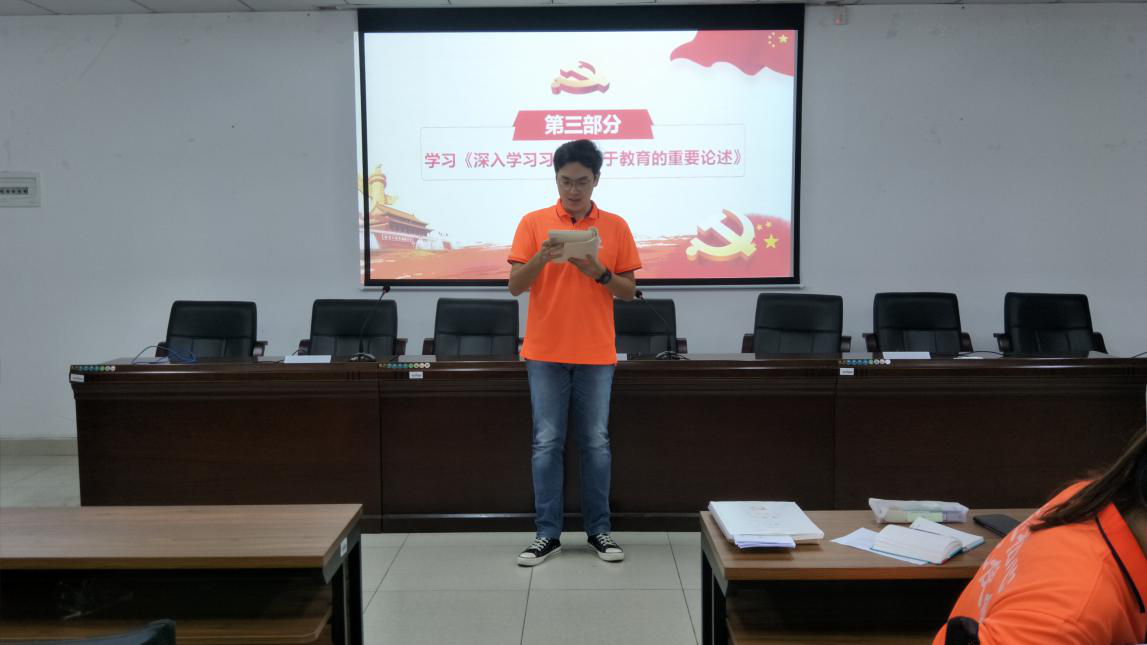 首先,各位党员对照党章细则,从自身出发反思在思想、学习、工作、生活等方面存在的不足以及存在差距的原因,并思考如何改正。分组讨论后,每组代表上台发言,指出本组党员存在的差距,并提出整改措施。然后,支部理论学习岗的学生党员领学《深入学习习近平总书记关于教育的重要论述》并分享学习体会。