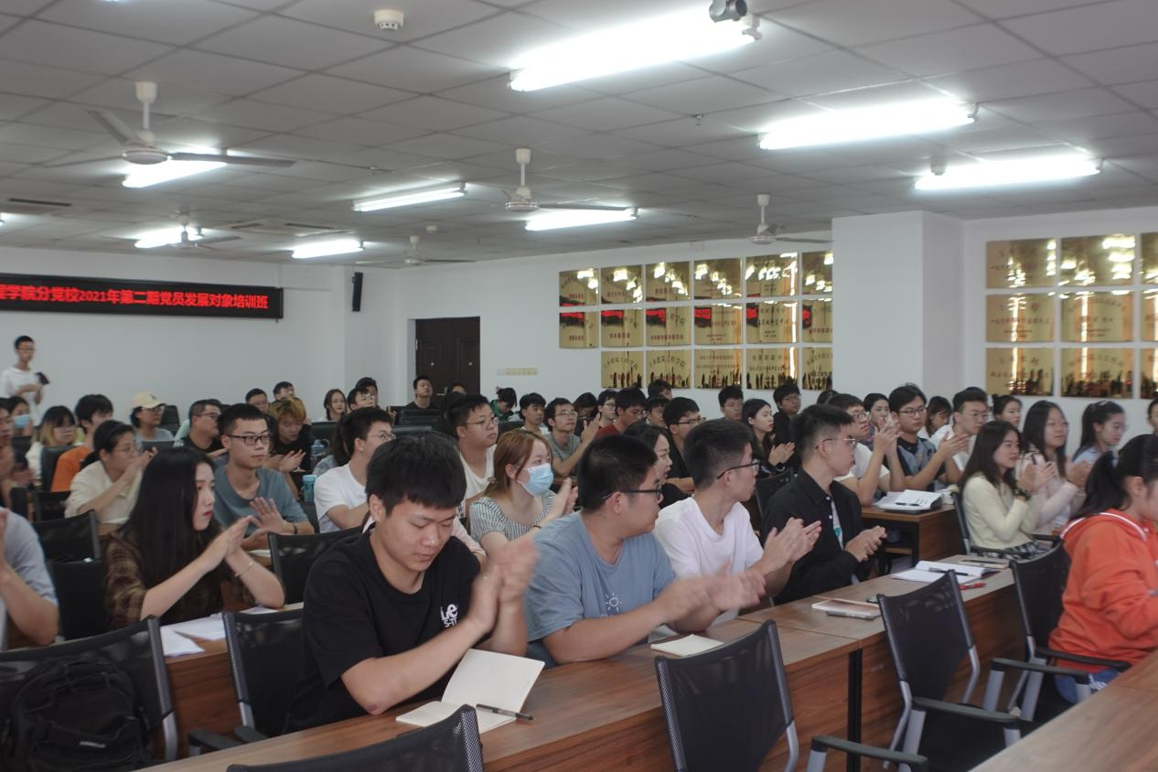 13日下午,党员发展对象培训班开班仪式由学院党委副书记孙晓媛主持。开班仪式结束后,学院党委书记卢江海以《中国共产党百年奋斗历程与优良传统》为主题为学员讲授第一课。卢书记指出,中国共产党走过了波澜壮阔的一百年,归结为一个主题就是“为中国人民谋幸福,为中华民族谋复兴的历程”,并通过中国共产党为何能取得全国政权、如何看待党对社会主义道路的探索、中国改革开放为何能成功、革命建设改革进程中形成哪些优良传统作风等四个问题,带领本期学员学习了建党以来我党在各个时期、各个方面取得的辉煌成就,令广大学员深刻领悟到中国共产党为什么能、中国特色社会主义为什么好。在此次党课的最后,卢书记引用庆祝中国共产党成立100周年大会上青年代表对党的献词,带领全体学员一同宣誓——“请党放心,强国有我”,引导青年学子凝心聚力跟党走,增强责任感和使命感。