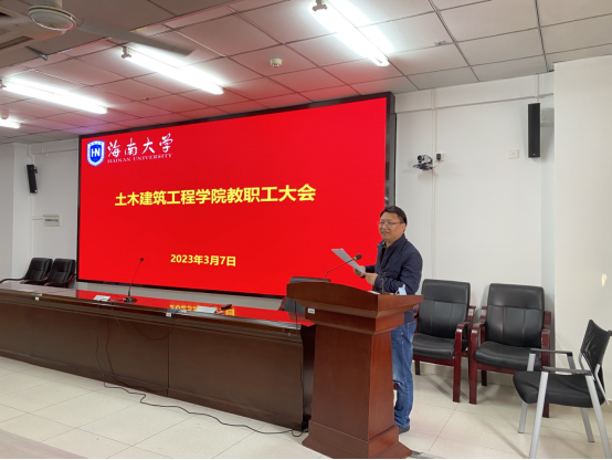 2023年3月7日下午,YABO鸭脖新学期教职工会议在研发楼510报告厅召开。学院全体党政领导班子成员张长海书记、周智院长、邱宙廷副院长、张友良副院长、田元福副院长、薛春霞副院长、辛大波副院长、系主任、实验教学中心负责人、科室管理职员和全体教师等参加会议。会议由学院院长周智主持。