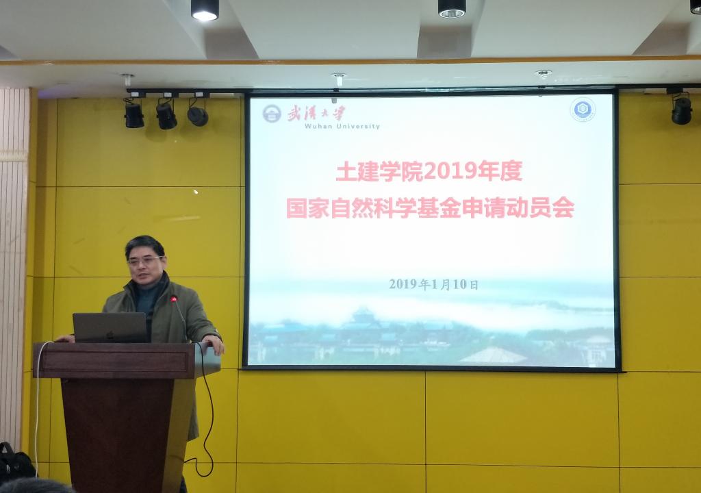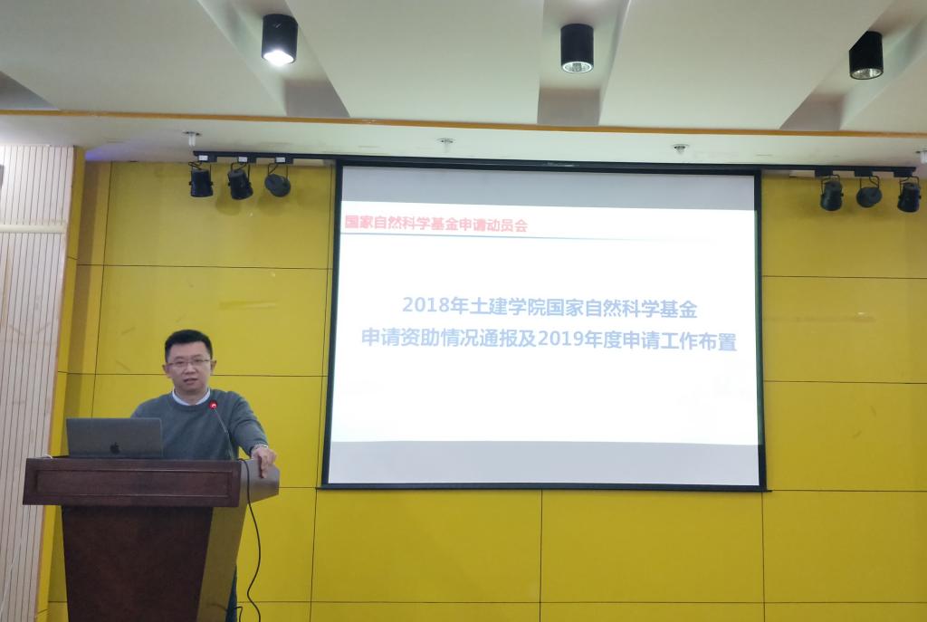 2019年1月10日下午14:30,土建学院2019年度国家自然科学基金申请动员大会在力学楼四楼报告厅举行,会议由胡衡副院长主持。