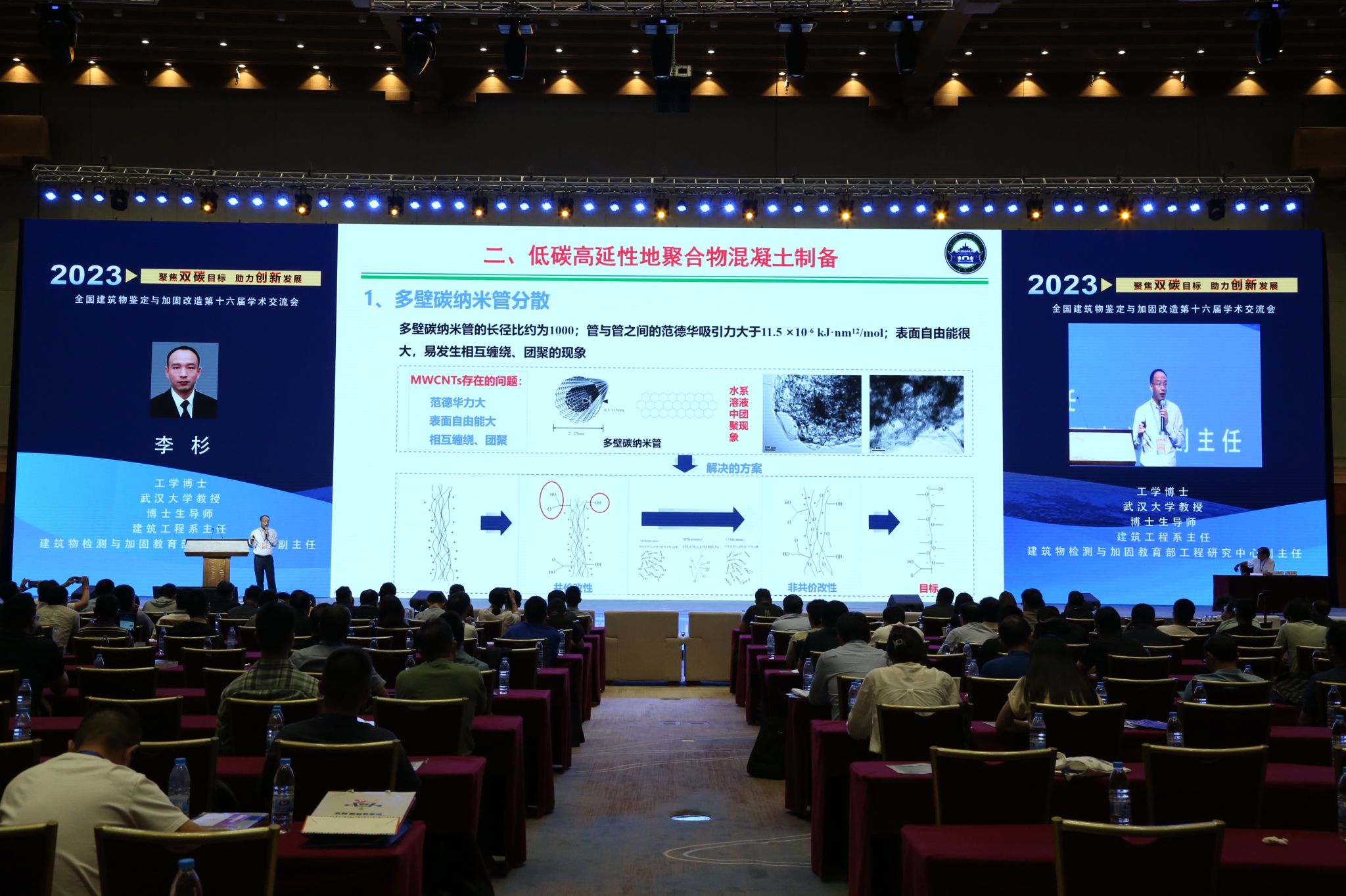 李杉教授作了题为《低碳高延性地聚合物制备与加固应用》的大会报告,向同行学者介绍了低碳高延性地聚合物混凝土的制备研发、力学性能,并分享了低碳高延性地聚合物在新型加固技术中的应用。