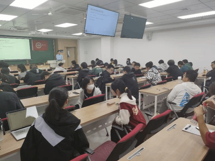 在开场进行的交流活动中,梁老师让同学们依据不同情况安排活动时间,并以此为切入点引出本次活动的主题——时间管理。梁老师通过一个生动有趣的视频向大家展示了时间管理的必要性,从而让大家初步了解到管理时间的方法,即“要事第一、时间打包、提高效率、实现人生”。梁老师从“个、十、百、千”四个方面,层层深入,一步步地向大家介绍管理时间的方法。