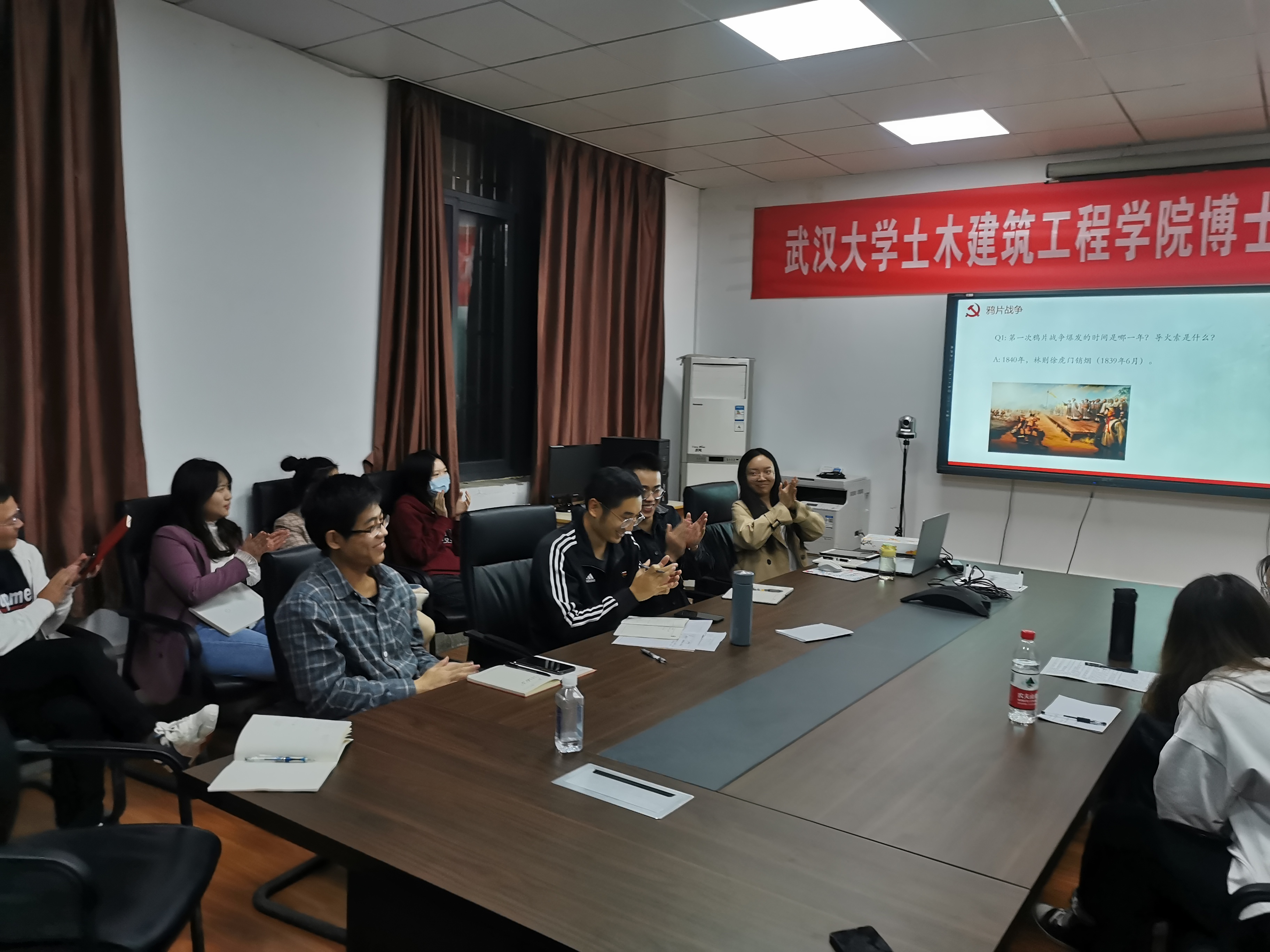 党史国史知识竞答活动开始后,支部成员表现积极,踊跃举手抢答,现场气氛十分活跃。并且,支部同志在回答问题之后,根据支部提前准备好的党史学习材料,对题目所对应的历史事件进行了详细解读,带领支部成员一起回顾和总结了党和国家近代史上的重大事件,使支部全体成员对鸦片战争、太平天国运动、戊戌变法、八国联军侵华战争、义和团运动以及辛亥革命等重大历史事件有了更深刻的理解和认识。