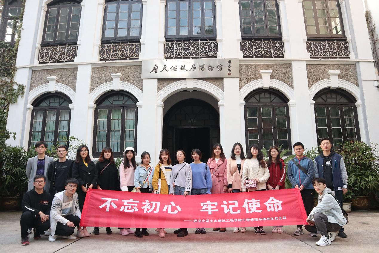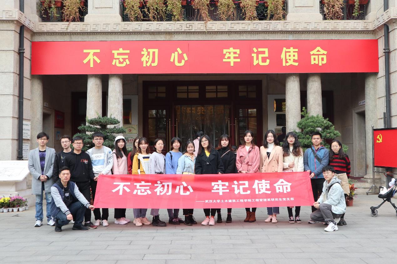 为促进支部的思想建设,提高党员的理论修养,同时贯彻落实《关于开展第二批“不忘初心、牢记使命”主题教育的指导意见》的相关要求,11月23日,学院工程管理系研究生第一党支部和第二党支部前往武汉中共中央机关旧址纪念馆和詹天佑故居博物馆联合开展“追根溯源,不忘初心” 党日活动,追溯曲折发展、波澜壮阔的革命历史,缅怀筚路蓝缕、以启山林的爱国志士,不忘为人民谋幸福之初心、牢记为人民谋复兴之使命。
