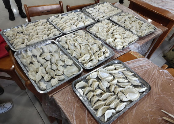 饺子店阿姨同样参与其中,向支部同志们传授包饺子的手艺。经过一个小时的努力,300个“形状各异”的饺子纷纷成型。同志们包的饺子有大有小,有圆有扁,有的像“小金鱼”,有的像“小元宝”,还有“太阳花”特色款。但无论“北方款”、“南方款”,吃出来都是团圆的味道。
