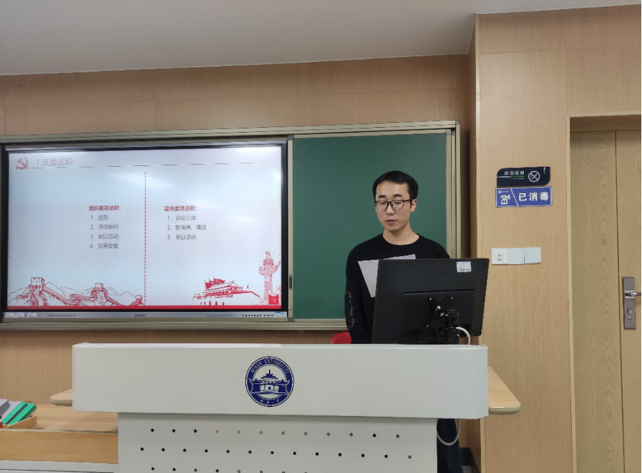 会议第四项,由支部书记何波同志介绍近期工作安排,主要包括三月主题党日以及日常学习内容分享两部分。主题党日就暂定就业方面,邀请一下本支部就业比较好的同志来给大家分享就业经验。日常学习内容分享暂定形式为支部成员轮流分享学习强国、半月谈等好文章,包括时政热点、党史等相关内容。