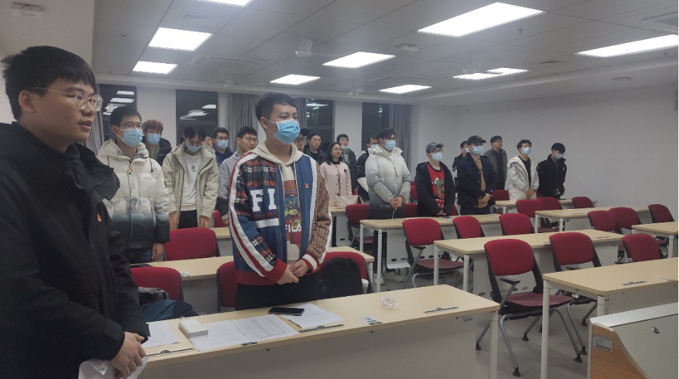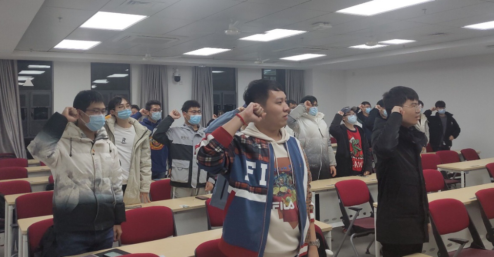 最后全体党员在组织委员姜涵中同志带领下,面向党旗庄严宣誓,表现出高涨的热情及坚定的决心,他们表示感谢组织培养,一定在新时代高举中国特色社会主义伟大旗帜,站在新的历史方位和新的起点上严于律己,认真学习党的理论知识,提高本领,密切联系同学,踏实做好服务工作,时刻以一名党员的标准严格要求自己,不忘初心,牢记使命。