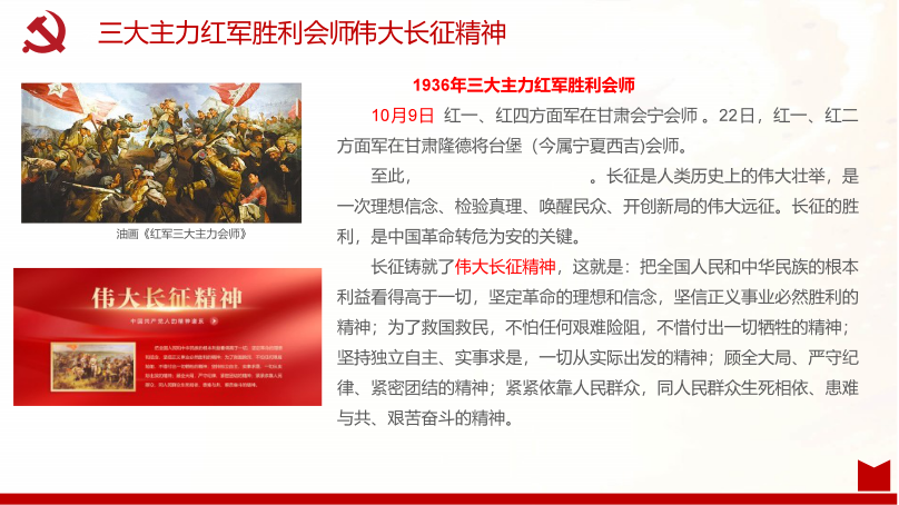 “红军不怕远征难,万水千山只等闲。”万里长征的胜利是我们党从苦难走向辉煌的最好印证。主题党日开始,王逸同志首先带领全体党员回顾了历史上的长征之路。从1934年10月至1936年10月,历时两年,红军进行了二万五千里长征,从中孕育出了伟大长征精神,即:把全国人民和中华民族的根本利益看得高于一切,坚定革命的理想和信念,坚信正义事业必然胜利的精神;为了救国救民,不怕任何艰难险阻,不惜付出一切牺牲的精神;坚持独立自主、实事求是,一切从实际出发的精神;顾全大局、严守纪律、紧密团结的精神;紧紧依靠人民群众,同人民群众生死相依、患难与共、艰苦奋斗的精神。