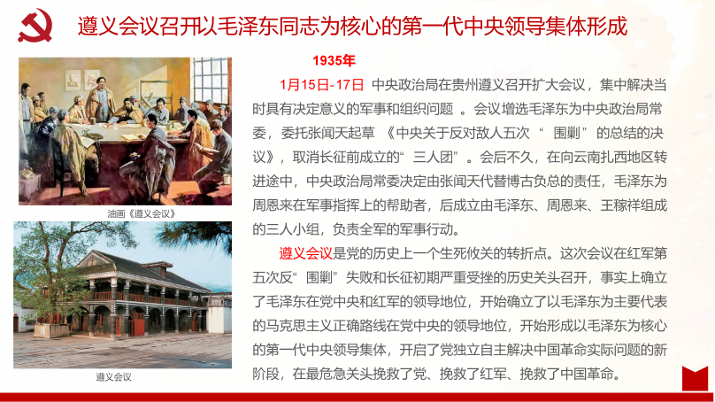 紧接着,支部书记王逸同志带领全体同志开始了党课学习:《中国共产党百年大事记之雄关漫道,披荆斩棘》。王逸同志首先为大家厘清了新民主主义革命与社会主义革命的区别和联系;讲解了“左”倾教条主义错误的内容、后果及纠正;然后以历史时间线为顺序,讲述了1932-1936这五年间的党的重要事变——从一·二八事变爆发,民众救亡图存之心空前高涨开始;到红军从第四次“反围剿”中艰难取胜;到第五次“反围剿”失败,红军和革命根据地遭受巨大损失,中央红军被迫实行战略性转移,红军长征之路也由此开始;到遵义会议开启中国革命新纪元;到最后西安事变爆发,抗日民族统一战线形成。