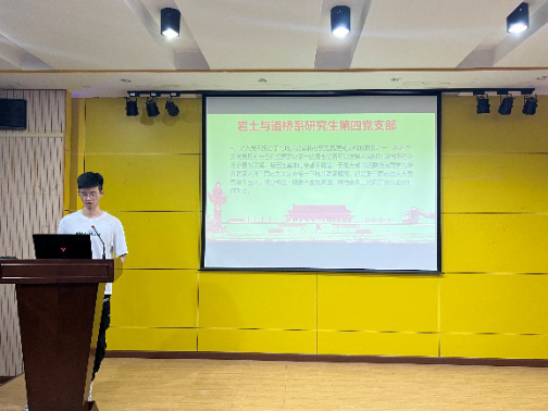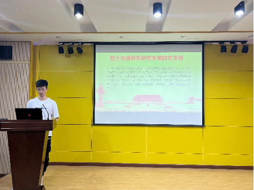 微党课环节,党课选题丰富,紧扣研究生思想学习生活实践,融合学科特色,充分利用微视频等新媒体技术,带领大家领悟党的精神,牢记初心使命。岩土一支部以“建党百年,回顾党的诞生”为主题,深入浅出地给大家上了一堂微党课,让追梦的步伐更加坚定。岩土二支部以“踔厉奋发启新程,笃行不怠向未来”为主题,带领大家学习2020年两会的工作报告和与土建发展相关的内容,纵览行业前沿知识。岩土三支部以“补足共产党人精神之钙”为主题,让大家深刻认识了作为共产党员坚定理想信念的必要性,唤起了党员心中清醒的敬畏感。岩土四支部、力学一支部和力学二支部以“青春为桨,梦想为帆,争做青年栋梁”为主题,带领大家学习习近平总书记4月25日在中国人民大学考察调研的内容,并提出广大青年应践行责任担当,立鸿鹄志、做奋斗者。建工一支部、建工二支部、工管一支部、工管二支部和市政二支部都以“冬奥会”为主题,分别从冬奥会的申报过程、冬奥会上中国的历史性时刻等不同角度带领大家深入分析了冬奥精神,其中市政二支部书记郭文彬用VCR的形式,以极富感染力的话语向大家分享了顽强拼搏的奥运健儿背后诠释出来的“奥运精神”,希望各位党员同志可以从冬奥会中汲取奋进力量,做到胸怀大局,勇于承担使命责任,迎难而上。建工三支部和市政一支部以“学习十九届六中全会精神”为主题,从党的百年奋斗中汲取奋进力量,从重大成就中读取成功密码。大家或做理论阐释,或作故事分享,或利用视频媒体展开故事叙述,给大家带来一场场精彩纷呈的微党课。