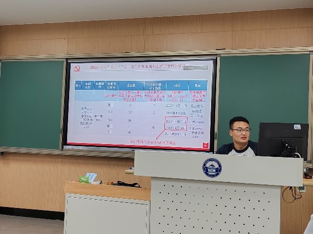 会议第一项,研究生党总支学生副书记陈纪胜同志首先介绍了本次培训会的主要内容,包括研究生党总支的组织设置与职责,支委会的组织设置与职责,“三会一课”、组织生活会、主题党日制度,培训与述职制度,党员发展与转正的材料填写指导,新闻宣传稿撰写指导、组织生活记录表和记录本的填写以及“筑浪珞珈”系列分享会开展情况八大模块。报告中,陈纪胜同志对研究生党总支、支委会的组织设置与职责进行了详细地阐述,要求党总支各委员应明确基本职责,要求党总支委员下沉党支部一线,做好党总支引领党支部建设的工作,协助支委开展党支部建设。随后,他强调党支部应重视与加强制度建设,这是推进党的工作得以顺利实施的保障,并且要求支部应积极总结工作中的优势亮点工作,查摆工作中的不足。陈纪胜同志还着重强调了党支部宣传委员应肩负宣传和纪检两项职责,充分做好党支部的政治建设和纪律建设,是党支部行稳致远的保障。