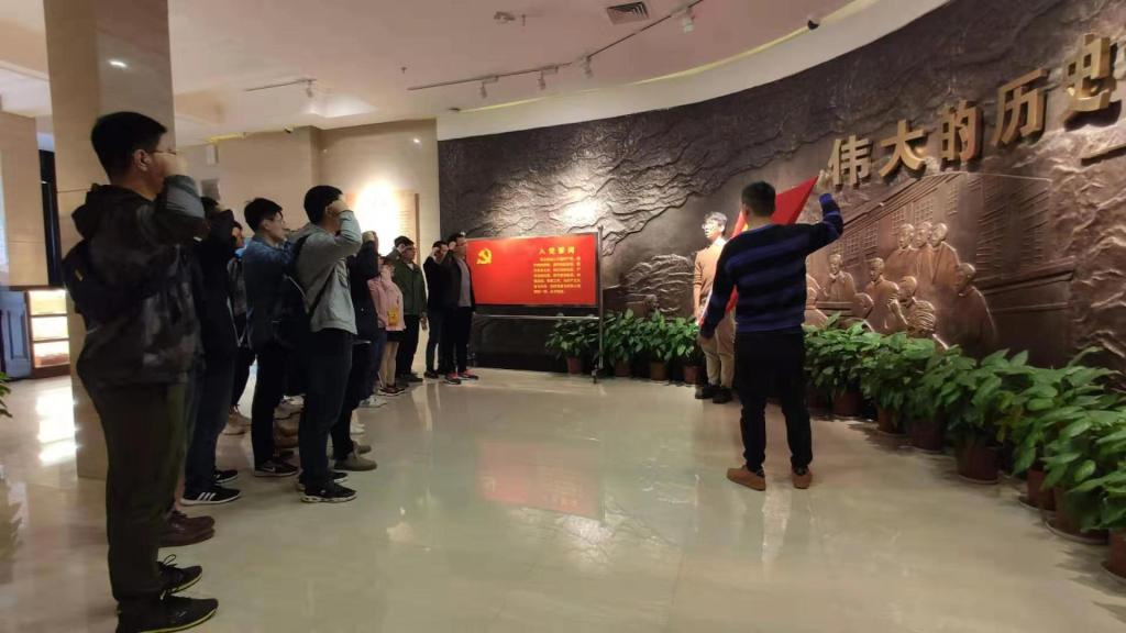接下来,大家来到了八七会议会址纪念馆。为了感知历史,不忘初心,全体党员在八七会址纪念馆大厅的党旗前,在辅导员伍阳老师的带领下一起重温入党誓词,让党员同志重温入党时的庄严承诺和坚定决心,牢记共产党员的政治责任和历史使命。八七会议是在第一次国共合作全面失败,大批共产党人惨遭屠杀的危急关头紧急召开的,会议纠正了大革命后期党内右倾机会主义错误,为中国革命开辟了武装夺取政权的正确道路,是中国革命由大革命失败到土地革命战争兴起的历史性转变的标志。毛泽东同志正是在这次会议上提出了“枪杆子里出政权”的著名论断。馆内的基本陈列用大量珍贵文物和图片等展品,反映八七会议召开的历史背景,会议经过及其历史意义。一楼参观结束后,大家前往二楼参观复原的八七会议会场,简单陈设的几张桌子、几把椅子,却在大家的心目中勾勒出当年开会的情景。