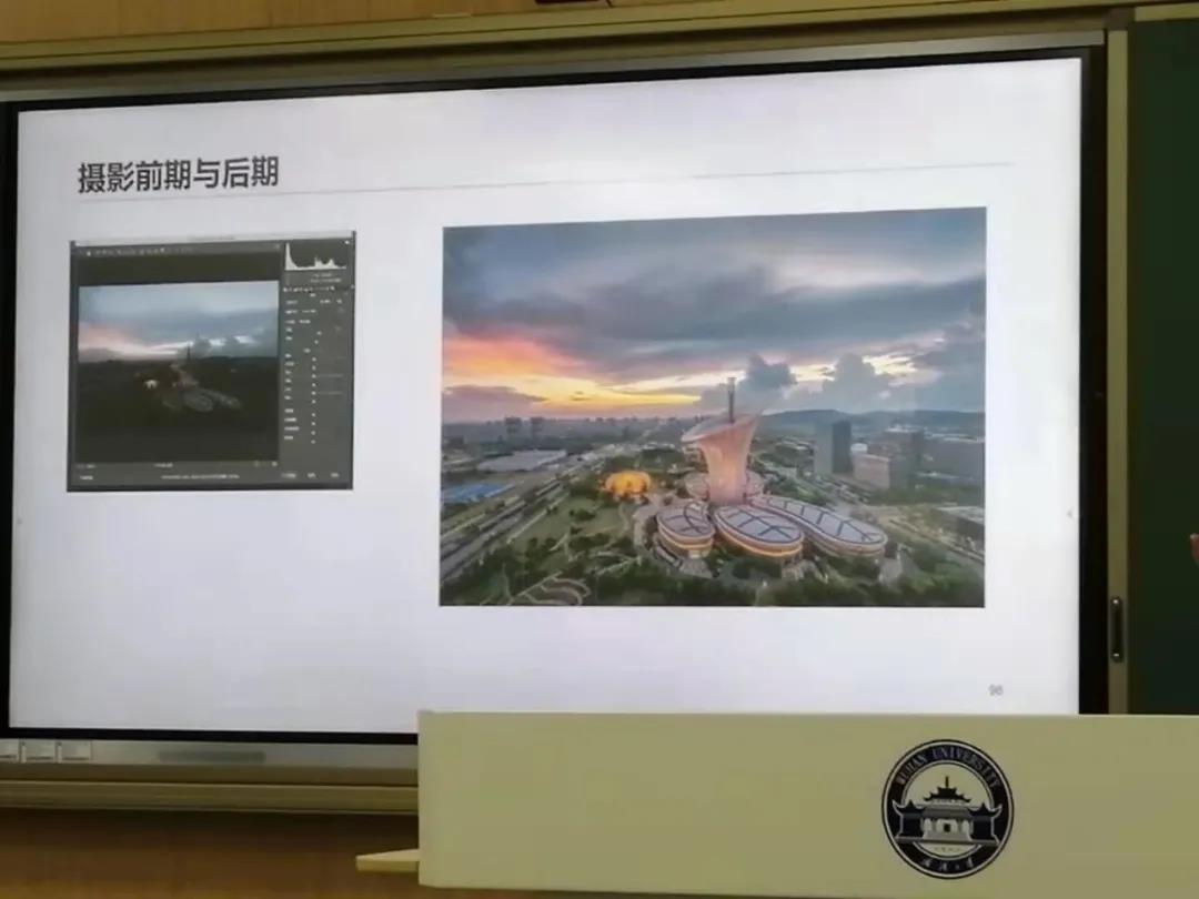 主讲人向观众放映了以往拍摄的优秀作品,从城市风光、自然风光到人物照、事物照,一张张都展现出高超的摄影技巧和艺术内涵。其次主讲人谈到“什么是好的作品”,他认为好的作品有三个关键点,即鲜明的主题、明确的主体、“简洁”的画面。
