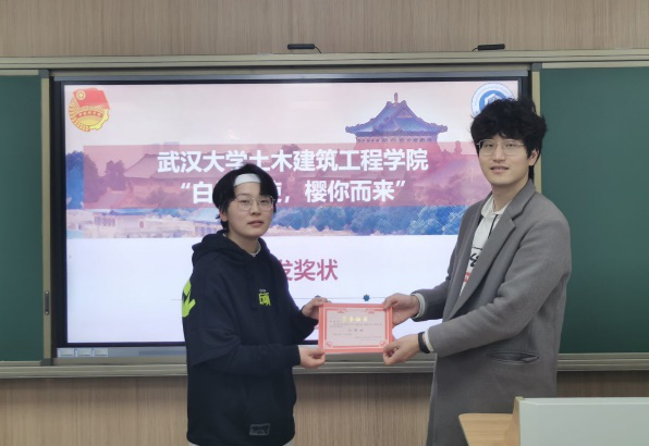 3月28日下午两点30分,樱花节摄影大赛表彰大会隆重开始,主持人张耀方进行致辞,并宣布比赛结果,而后通过PPT向各位观众展示获奖作品。之后Bsports必一体育研究生会主席柳镕林同学为获奖选手代表余蒙同学颁奖。