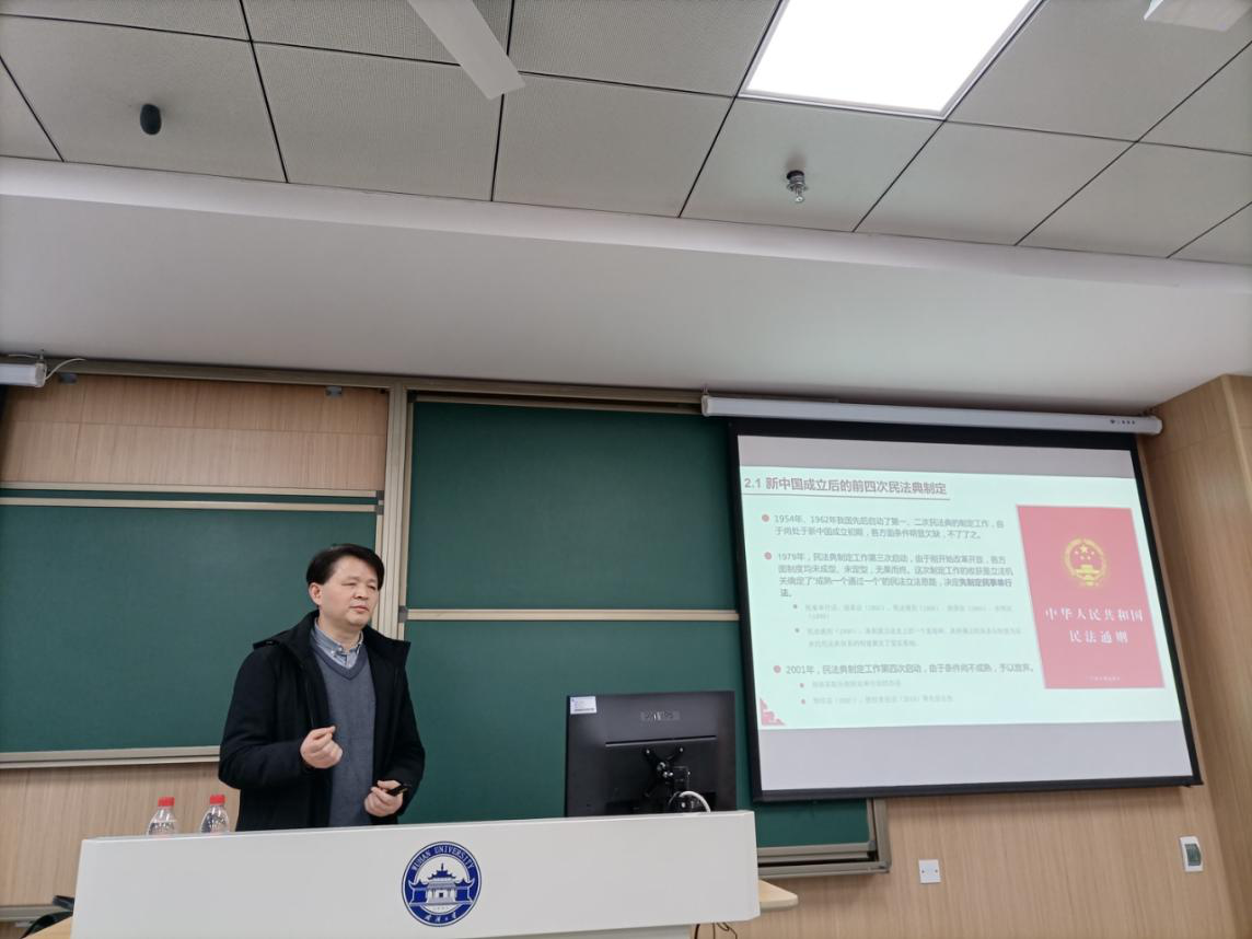 《中华人民共和国民法典》(以下简称《民法典》)是一部固根本、稳预期、利长远的基础性法律,也是新中国成立以来第一部以“法典”命名的法律,是新时代我国社会主义法治建设的重大成果,对推进全面依法治国、加快建设社会主义法治国家具有重大意义。现场同学们对李克武教授和现场嘉宾老师的到来表达热烈的欢迎。