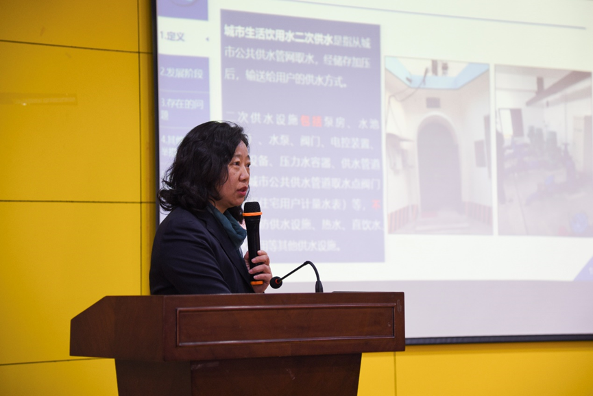 接下来是学术报告环节,李孟教授的报告题目是:《基于光纤传感技术的海绵城市设施监测系统的构建》,他分析了常规的监测手段及其存在问题,向大家介绍了基于光纤传感技术的海绵城市设施监测系统,并评估基于监测与控制系统的实施效果,给予大家很大的启发。武汉市水务集团邱文水总工程师带来了题为“供水水质保障与二次供水”的讲座,她详细介绍了二次供水的定义、发展阶段、存在的问题以及其他城市和武汉在二次供水改造中的举措,让大家对二次供水有了更深入的了解。