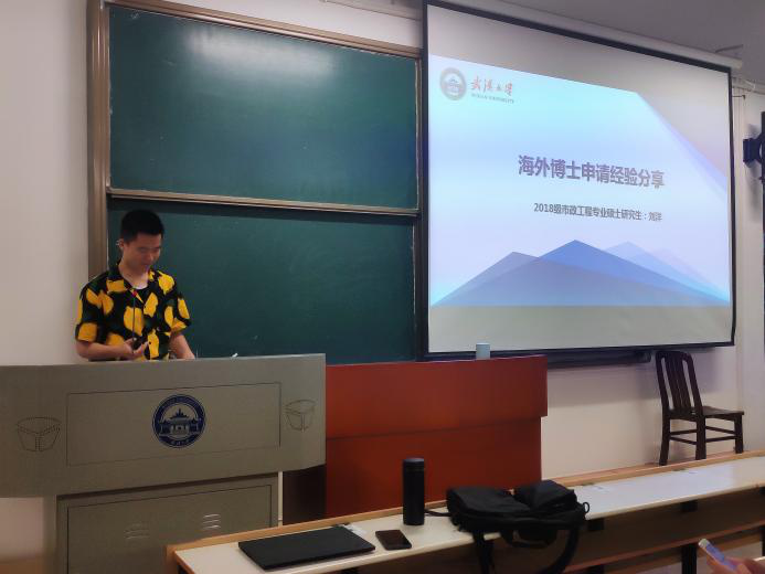 本次活动由市政工程系研究生第一党支部书记靳天赐同志主持,主要议程如下:一、市政工程系优秀的应届毕业研究生分享研究生生活和就业经验;二、市政工程系邵森林老师分享科研心得。活动开始,市政工程系六位优秀的应届毕业生刘洋、李哲、陈宇凡、李逸豪、赖德来、和倩倩依次上台分享了他们读研期间在生活、科研以及就业方面的经历和经验,他们分别从留学深造、选调生、高校辅导员、房地产行业、设计院五个方向为在场的同学们带来了一场干货满满、风趣生动的就业经验分享会。