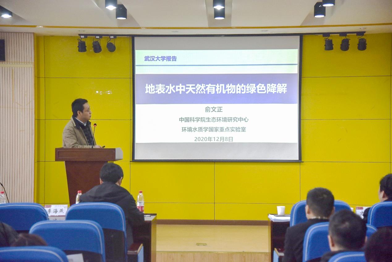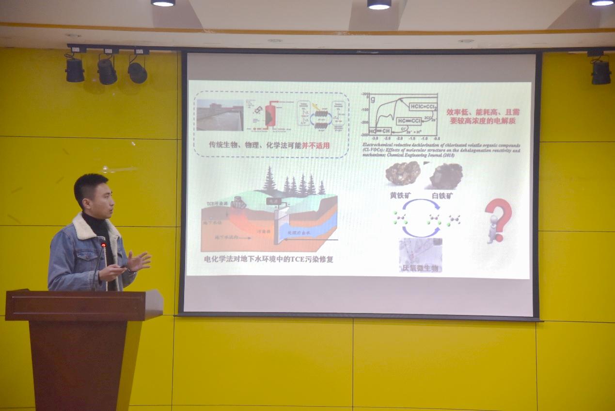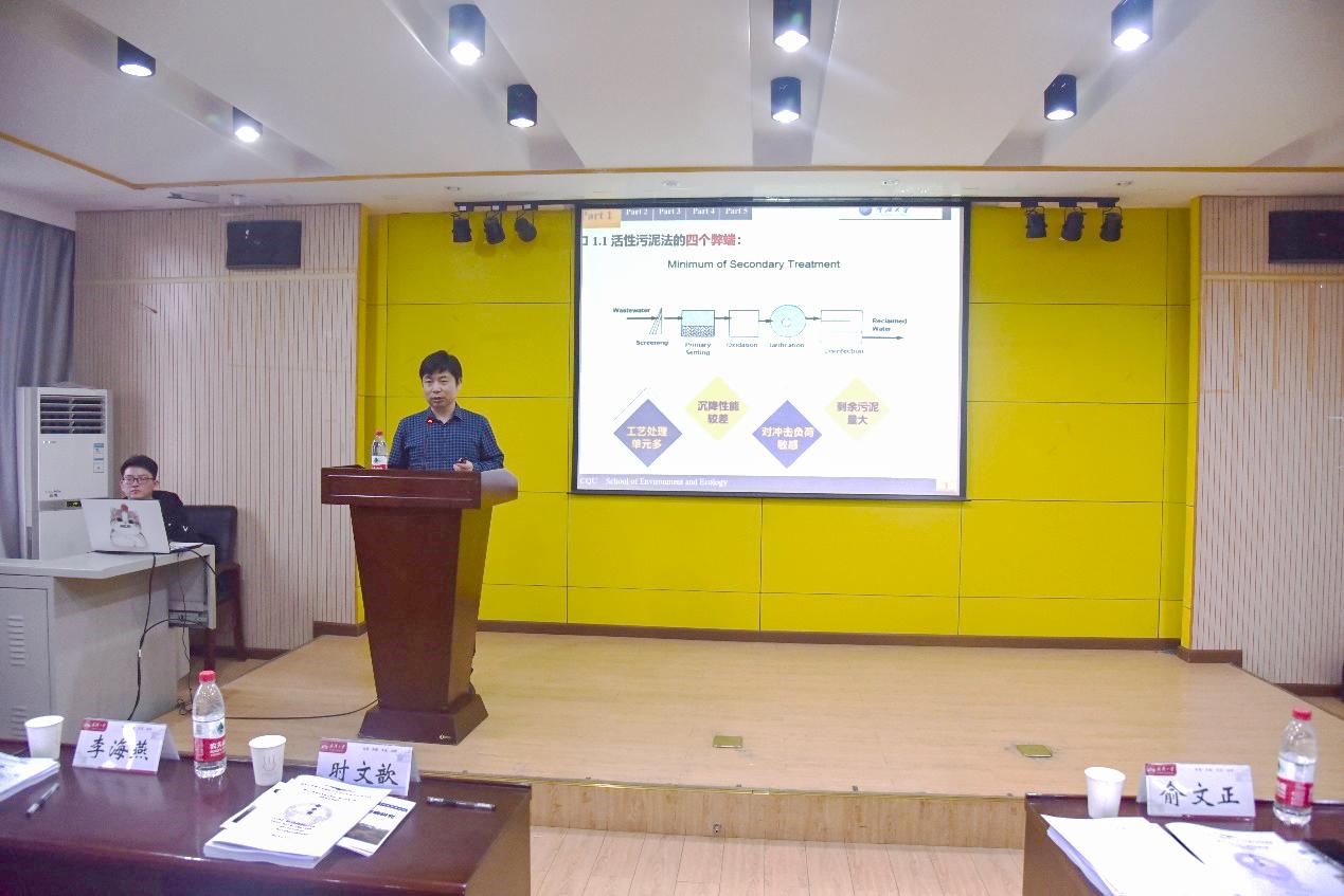 接下来是到场的专家进行学术报告的环节。时文歆教授的报告题目是《好氧颗粒污泥及其强化技术研究》,他介绍了好氧颗粒污泥的形成过程、特性研究及机理,给予同学们很大启发;俞文正教授的报告题目是《地表水中天然有机物的绿色降解》,他深入浅出地分析了当前地表水中有机物绿色降解的研究现状,并结合自身研究、投稿经历激励同学们在科研之路上做出成果,有所建树。到场同学对两位专家严谨而不失风趣的学术报告产生了强烈的兴趣并与两位嘉宾老师积极互动,报告过程中时不时爆发出热烈掌声,现场氛围慢慢达到了高潮。