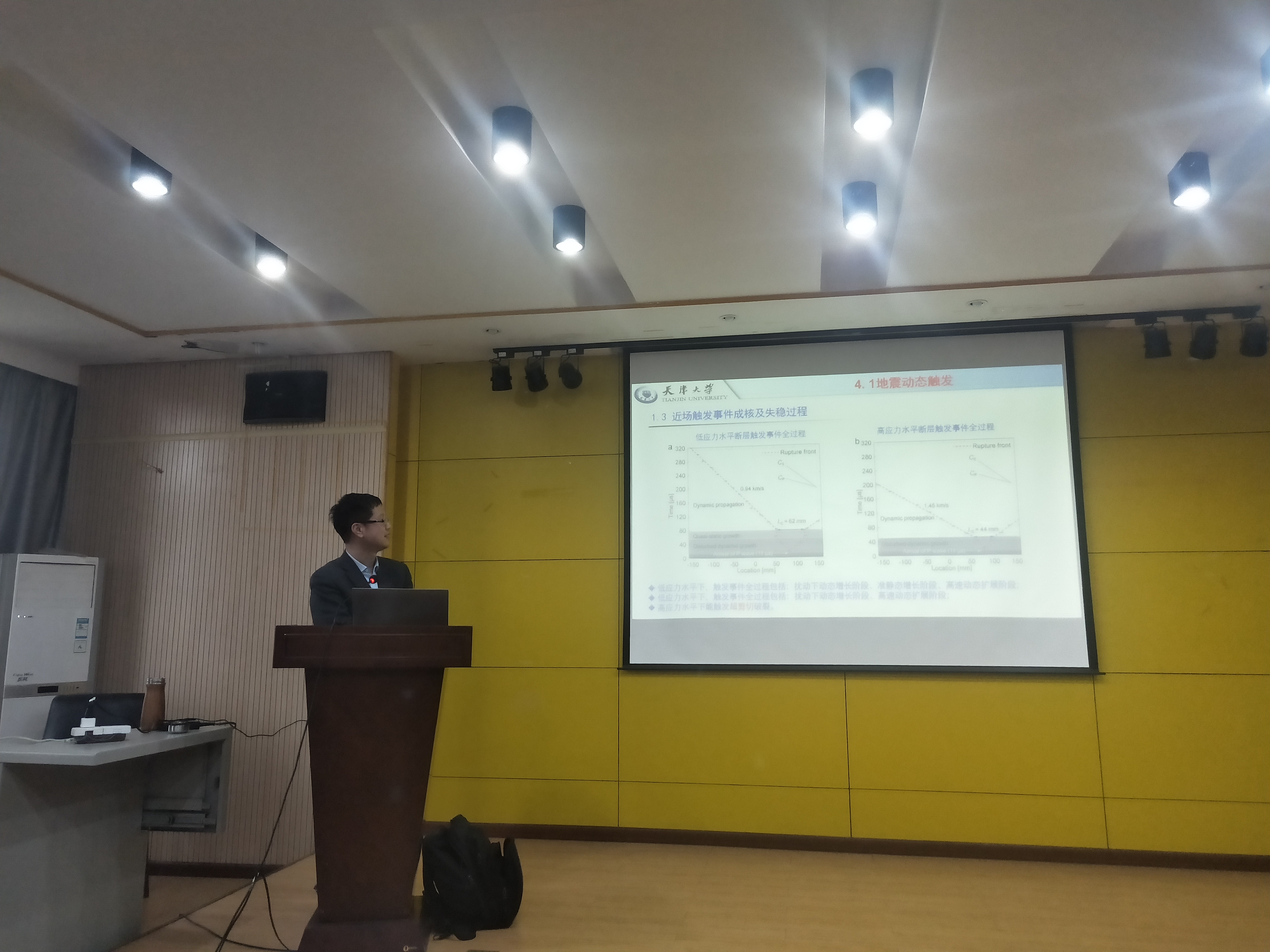 首先,夏教授介绍了热流固耦合真三轴测试系统,以及高围压、高孔隙水压作用下裂隙岩体力学行为的相关研究。然后,夏教授介绍了实验室地震研究的最新进展。报告结束后,参会师生踊跃提问,现场学术氛围热烈,与会师生进行了热烈的探讨和交流,受益颇丰。