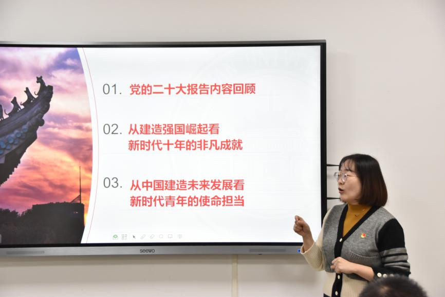 Bsports必一体育团委书记杨荷老师以“大国建造筑梦未来,中国青年勇担使命”为主题开展了一次党的二十大精神宣讲,带领团学骨干集中学习二十大精神。杨荷老师从党的二十大报告回顾、以建造强国崛起看新时代十年的非凡成就、以中国建造未来发展看新时代青年的使命担当三个方面分享了她对于二十大精神的理解以及对青年学生的建议。
