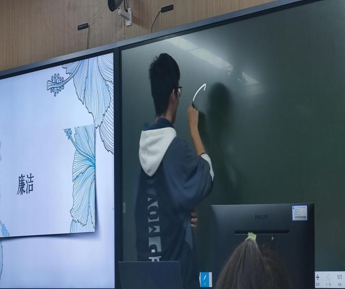 第三环节,游戏环节:为了让班会不那么枯燥无味,本次班会精心准备了两个游戏:你画我猜、数字抢答,题目都来自于之前所讲的文明建设相关内容,既不偏离主题,又保证了趣味性。同学们都积极参加,两个班的对决,比分很接近,拉近了41、42两个班同学的距离,增进了对班级同学的了解。