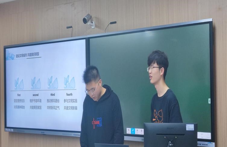 2021级工科试验班41班和42班于11月5日下午5点联合召开“共建文明校园”主题班会。
