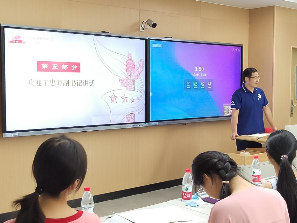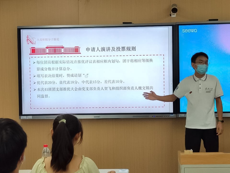 第五项,副书记发言。王忠海副书记对申请人的演讲进行了点评,并对入党程序进行了详细阐释。对于同学的学习困难,尤其是高数学习问题,王忠海副书记提出了解决方法,并以自身经验对同学们进行了学法指导。“白天上了一节课,晚上要花两节课。”这是书记对同学们的真诚建议。在最后,王书记亲切鼓励同学们积极面对学习困难,希望营造出良好的学习氛围。