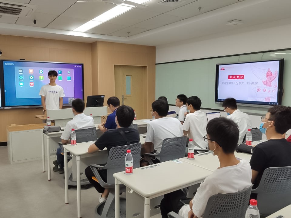 第六项,学长分享经验。院学生会主席团负责人王阳学长从大一自身的经历出发,解释了大学和高中学习过程的不同,强调了上课听讲的重要性。学长还对科研意义进行了说明,希望同学们多了解多参与,与烛光导航师多多交流。最后,学长对同学们表达了真诚祝愿,希望同学们能够在丰富多彩的大学生活中提升自己。