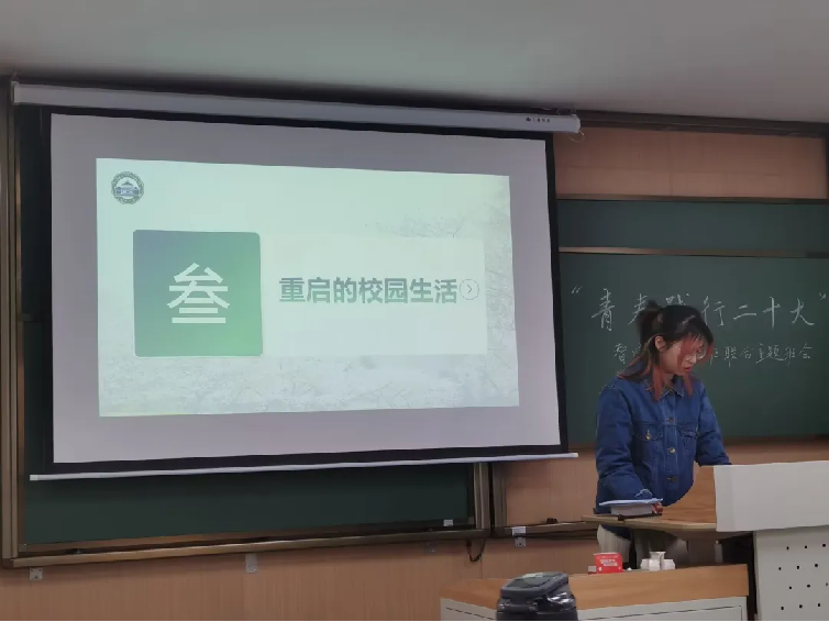 班会的第三个环节是李柯仪同学介绍重启的校园生活。经过一个寒假的放松之后,校园生活已经正式重启,告别了以往的封校防空政策之后,梅操电影等校园文化活动也已经重新开放。