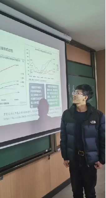 接下来由张厚登同学介绍了近年来我国的经济形势,并从调整就业观等四个方面为同学们提出了几点建议。