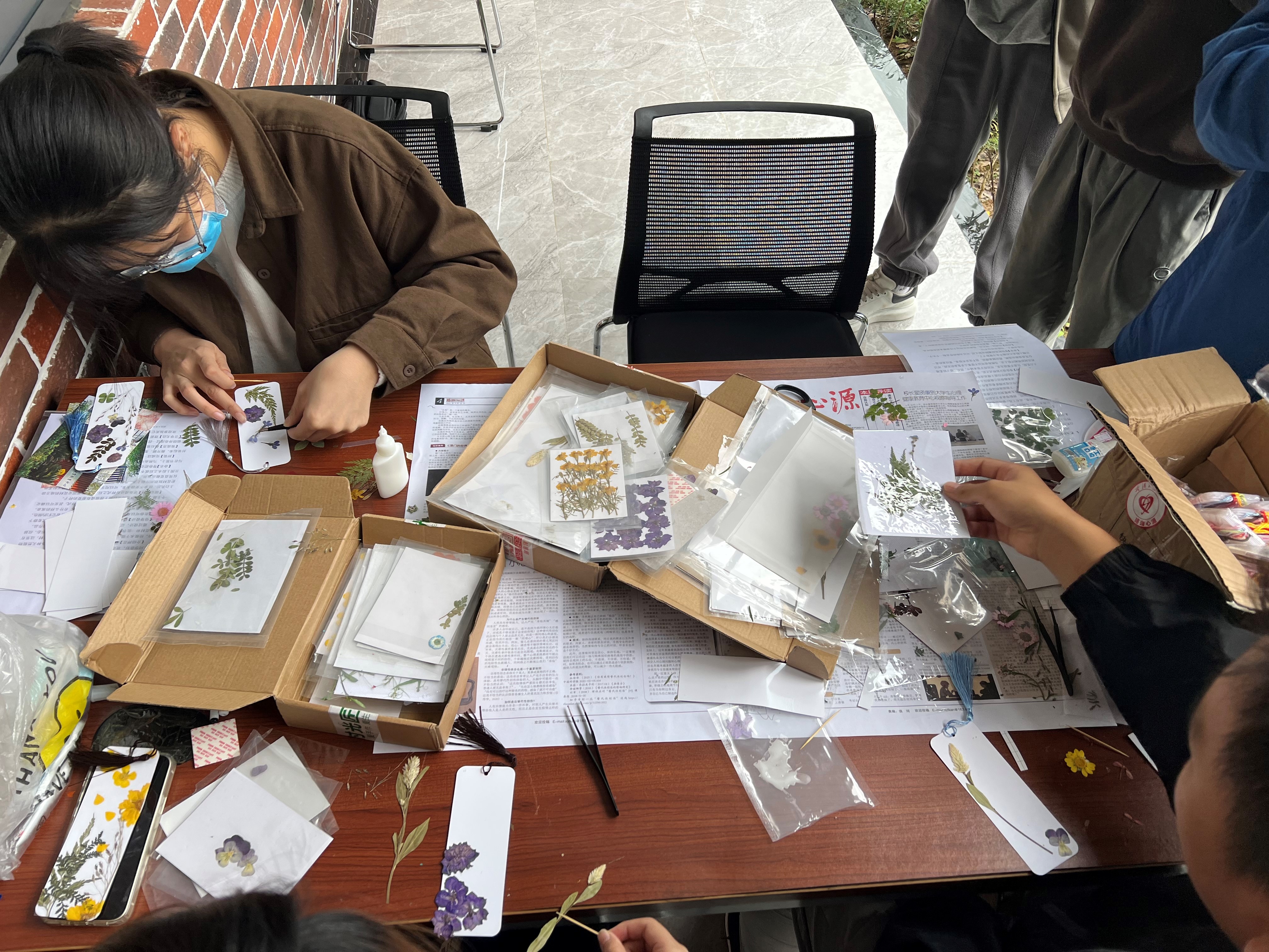 团体辅导结束以后,同学们还参与了制作压花书签、妙语说书人、答题箱等趣味活动,在实践中体味设计的快乐,在交流中排遣自己的烦恼。
