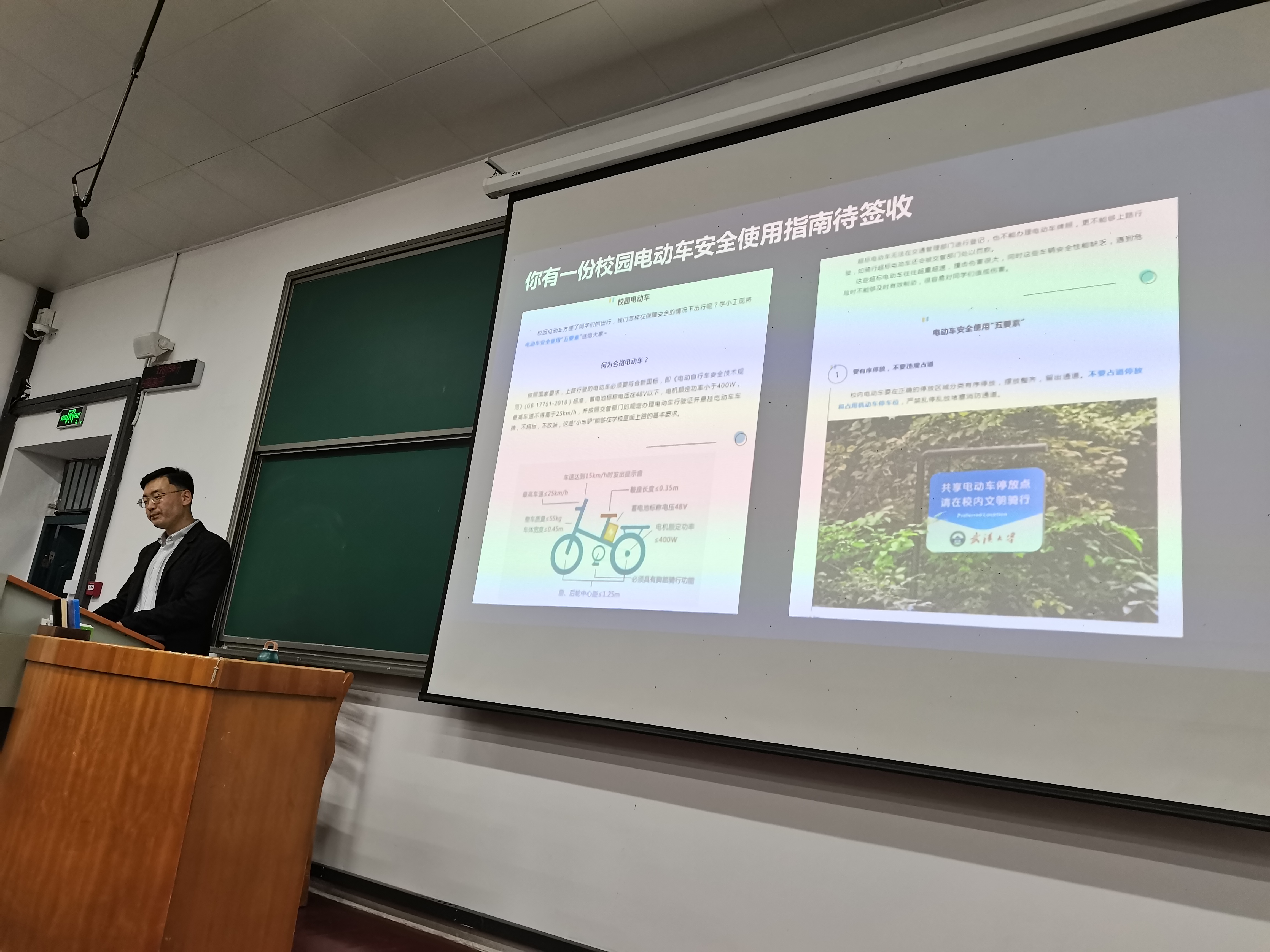 大会第五项,杨老师对日常重要事项进行提醒。杨老师通过案例讲解的方式叮嘱学生预防网络诈骗,注意水电和饮食安全,谨慎熬夜,注重心理健康,妥善处理亲子关系,注意校园电动车安全使用问题。最后,杨老师希望每个同学都能将校园安全常挂心间,拥有一个快乐的大学生活。