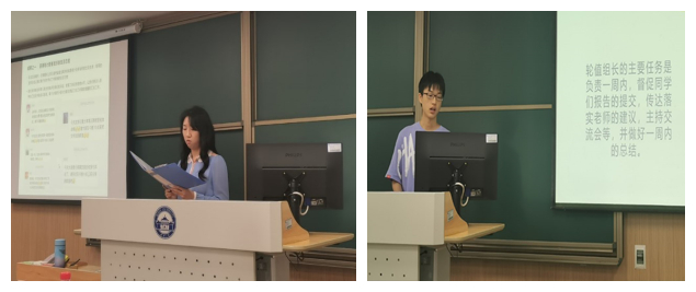 随后,张喆和刘兆康同学作为烛光导航小组学生代表,依次上台发言,两位同学结合暑期参加烛光导航小组的经历,谈了自身的收获和体会,并分享了对于做好小组轮值组长经验,一张张图片、一篇篇总结、一个个点评,从不同侧面展现出烛光导航师对学生的关怀和投入。