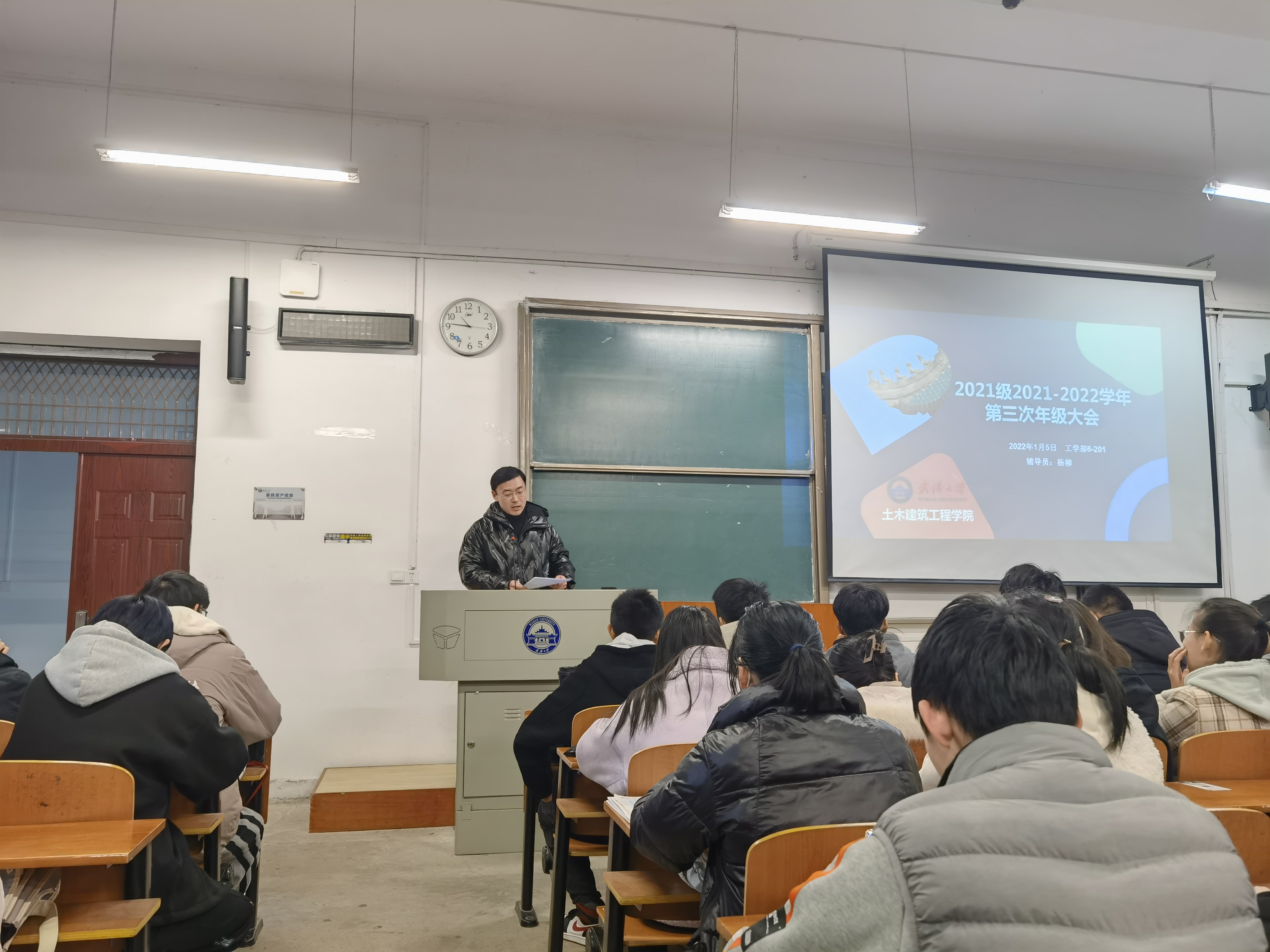 2022年1月5日上午10:30,Bsports必一体育2021级第三次年级大会在工学部六教圆满举行,2021级全体本科生参加本次大会,2021级辅导员杨柳老师主持大会。