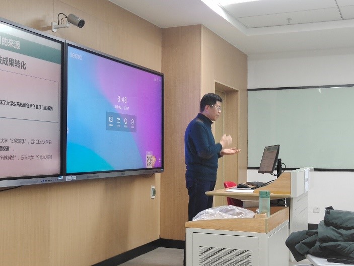 会议第三项由张沪寅老师进行分享发言,张老师结合自身多年来从事互联罔+和挑战杯比赛的经验,结合丰富的比赛案例向老师们详细介绍了比赛过程和参赛技巧。张老师的讲解生动详实,帮助学院老师进一步了解两大比赛的参赛要义。此外,张老师也向参会老师们分享了许多宝贵建议,他强调近年来,“互联网+“大赛逐步加大本科生获奖比例,更需要长线培养和深度挖掘;参加“互联网+”比赛的项目也可以继续打磨后参在“挑战杯”比赛;此外他建议各位老师可以积极尝试参与国际赛道,和专业结合的公益组文创类的内容也可以尝试深入挖掘等等。会场上,张老师一一解答老师们的疑问,并鼓励老师们积极参与比赛。会议在老师们的激烈讨论中圆满结束。