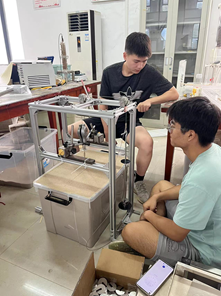 决赛前一日,参赛同学随指导老师前往比赛场地,对比赛材料与设备进行了仔细检查和调试,根据赛场条件制定了周密的比赛应对方案。
