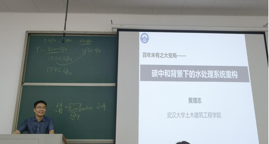 黄理志老师以自己与给排水科学与工程专业的故事为例,讲述了在碳中和背景下,智慧水务如何通过水处理系统重构、污染物再回收利用满足“美丽中国”战略发展需要,勉励学生坚定专业自信,认清身上肩负的使命,要用努力让自己的选择变得正确。