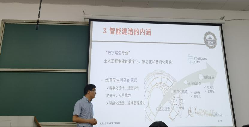 于清亮副院长聚焦智能建筑材料,探讨了混凝土作为建筑行业基础材料,在功能化、智能化领域的发展方向和研究热点。随后,于院长介绍了智能建造专业的课程设置和培养目标,勉励学生在数字经济发展时代背景下,锤炼技能,做集智能设计、智能施工、智能运维等能力于一身的优秀人才。